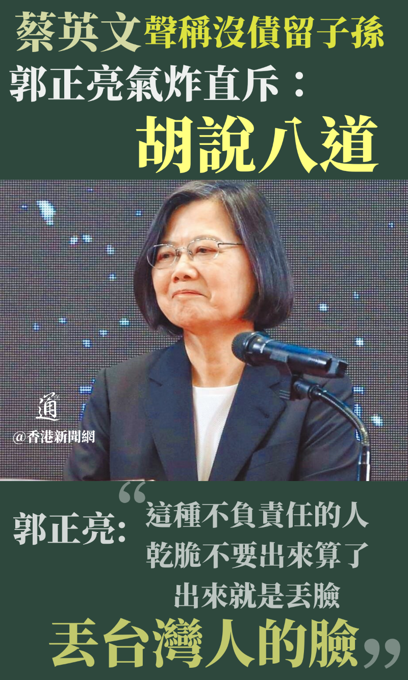 蔡英文聲稱“沒有債留子孫” 郭正亮直斥:胡說八道分享到: