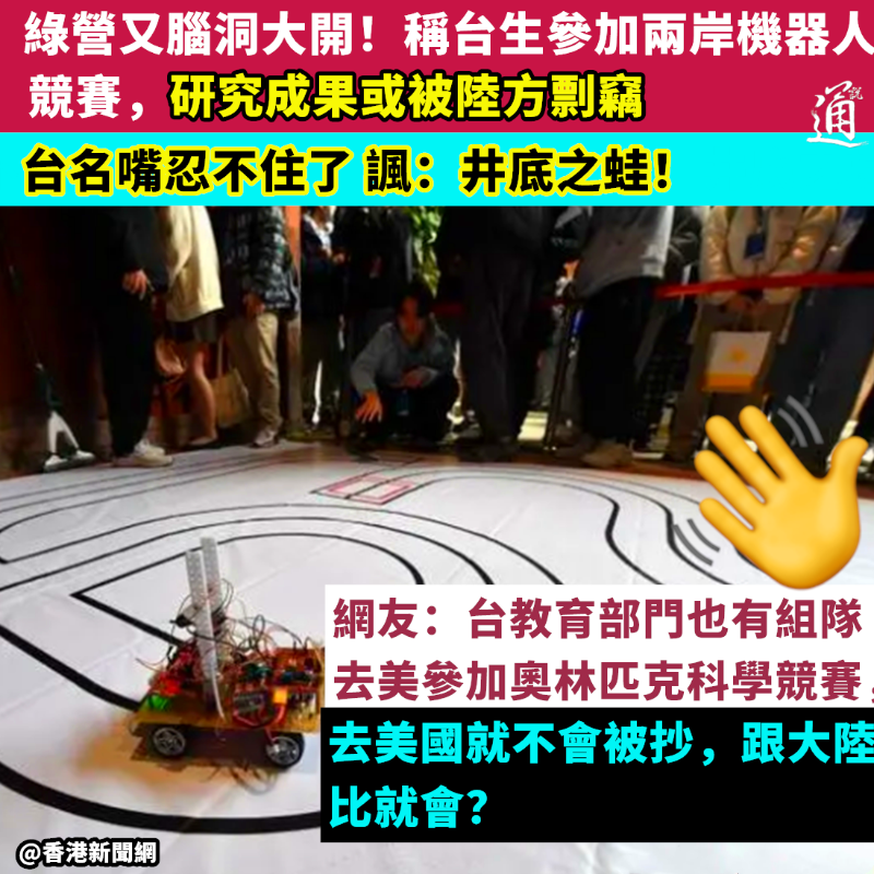 綠營又腦洞大開!稱台生參加兩岸機器人競賽,研究成果或被陸方剽竊分享到: