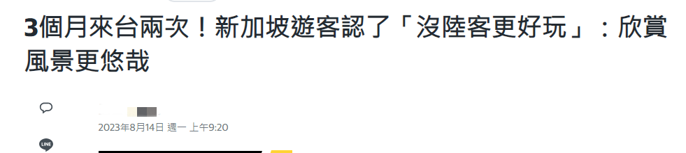 香港新聞網8月15日電 大陸公佈第三批出境團隊遊國家和地區名單,台灣仍未包括在內。台灣旅遊業者怒斥台當局“毫無善意”,正醞釀走上街頭抗議。不知是“吃不到葡萄就說葡萄酸”還是想“挽回顔面”,綠媒近日斷章取義《南華早報》一篇台灣觀光冷清、旅遊業不振的報道,炒作起“台灣沒有陸客更好玩”的話題。如此刻意的“帶風向”新聞,令不少台灣網友都忍不住吐槽:“都沒有人更好喔”、“繼續這樣報導台灣旅遊業倒光光”。