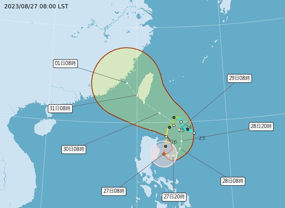 圖片來源:台灣“中央社” 台氣象部門說明,強颱風“蘇拉”27日下午位於鵝鑾鼻東南方630公里海面上,晚間至28日會逐漸偏北移動,28日之後會往西北方、逐漸朝台灣靠近,威脅不容小覷。 氣象部門預計,“蘇拉”穿過恆春半島、台東或屏東一帶的機會大,但路徑仍有修正空間。28日至29日清晨可能會發布海上颱風警報,最快29日下午發布陸上颱風警報。 氣象部門指出,“蘇拉”影響台灣最明顯的時間點在30至31日,東南部地區首當其衝,有局部大雨或暴雨發生。由於中小學將在30日開學,氣象部門會密切觀察颱風的風雨情況,並提供給地方政府參考,是否放假則以各縣市政府公告為準。(完) 【編輯:俞丹凤】