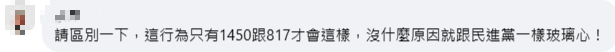 也有網友不認同這些觀點: “請區別一下,這行為只有1450跟817才會這樣,沒什麽原因就跟民進黨一樣玻璃心!(註:1450與817皆為台灣網絡用語,泛指親綠網絡水軍)”;