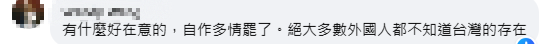“有什麽好在意的,自作多情罷了,絕大多數外國人都不知道台灣的存在。”