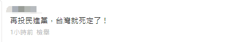 還有人表示,“再投民進黨,台灣就死定了!”↓