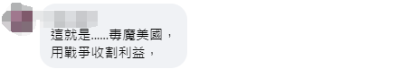 “以(以色列)烏(烏克蘭)正在打仗,美國要供軍備‘加油添火’儘管去!少攀扯寶島台灣!誰沾上霉果(美國)瘟神誰倒霉!滾。”