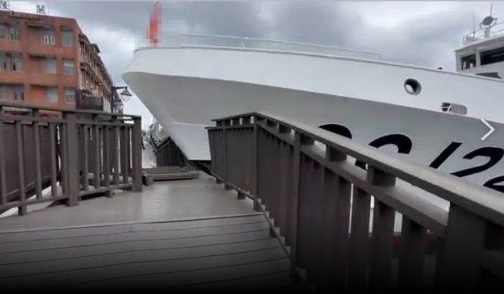 香港新聞網10月25日電 隸屬於台“海巡署”東部機動海巡隊的500噸級巡防艦南投艦,23日上午在進基隆港靠泊時,疑似操作不慎,導致整艘艦無法及時停住,直接撞上碼頭,同時波及到碼頭上的行人觀景棧道。當時棧道上有不少民眾,民眾們稱眼見大船“直直往自己衝”差點被撞上,嚇得趕緊閃避,直呼“在陸上走也會險被艦艇撞到”。
