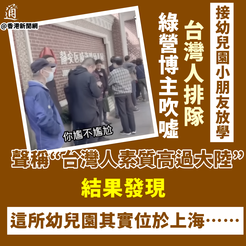 香港新聞網10月30日電 近年來,祖國大陸日新月異的變化吸引了不少台灣同胞前來發展,親身感受過後,他們無不感歎於大陸廣闊的空間、卓越的科技、便利的生活……才意識到自己竟然被島內綠營人士矇騙了這麼久! 然而,就有這麼一群執迷不悟的人,為吹捧台灣,長期在網絡上不分青紅皂白貶低大陸。但尷尬的是,他們口中所謂“台灣更好”“台灣人素質更高”的“證據”,最後竟被證實發生在大陸…… 近日,一位綠營博主發布影片,似是深知兩岸科技差距過大,他便轉而吹噓起台灣所謂的“人文素質”,言之鑿鑿“台灣文明程度遠遠領先於大陸”。 他先是聲稱,“一個地方好不好,文不文明不僅僅是看建築環境,而是看一個地方民眾的素養。”接著他提到,“雖然台灣街道設施看著有些陳舊了,但台灣人不管倒垃圾還是接小孩,都會有序排隊。” 為“力證”自己的觀點,他播放了一段家長們在幼兒園門口排起長隊,等待小孩出來的網絡視頻。這位博主看後吹噓道,台灣人這麼多家長接小孩放學,竟能做到按統一順序排隊,“不像大陸人只會一窩蜂地擁擠上去,造成交通擁堵也無所謂”“這文明的差距瞬間就體現出來了!”