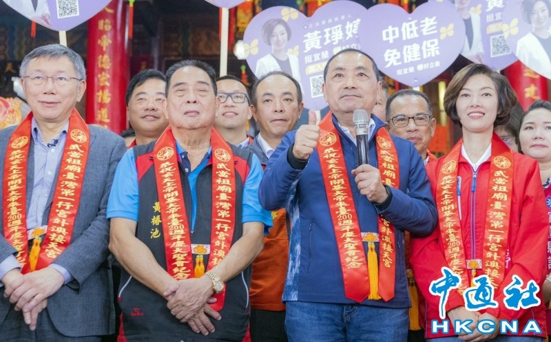 香港中通社圖片 宜蘭外澳接天宮當天舉行典禮,侯友宜與柯文哲均出席活動。典禮開始後,侯友宜首先站好位置,柯文哲走近後侯友宜主動伸手,雙方簡短握手。 典禮禮成後,主持人請侯友宜先行致詞,不過侯友宜堅持要讓先到會場的柯先致詞,兩人相互禮讓,麥克風推來推去,最終由柯文哲先講。輪到侯友宜致詞時,民眾黨支持者高喊口號,柯文哲遂揮手制止,侯友宜也呼籲現場安靜,讓他完成講話。 藍白首次政黨協商結束,侯友宜、柯文哲二人少見同台,一舉一動都成為外界關注焦點,有台媒甚至統計,兩人從進場到離開“一共握手三次”。典禮現場也聚集不少藍白陣營支持者,不時喊出“藍白合”的口號,氛圍熱烈。 針對“藍白合”進度,侯友宜表示,希望與朱立倫、柯文哲3人見面的時間越快越好,莫讓支持者焦慮,要團結在野力量,達到六成民眾的期望,促成政黨輪替。 柯文哲當天也回應大選合作表示,合作要有公平公開的方法,若以奇怪比賽規則、訴諸於密室政治分贓進行合作,將無法得到台灣人支持。(完) 【編輯:馬華】