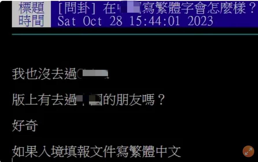 據台媒報道,有名網友10月28日在PTT以“在大陸寫繁體字會怎樣?”為題發文,原PO表示自己沒去過大陸,好奇“如果入境填報文件寫繁體中文,或是一般商業活動刻意寫繁體中文”,對方看得懂嗎?原PO還擔憂“會被認可,還是會被逮捕?” 帖文曝光後,兩岸網友都震驚了,紛紛上場科普。首先登場的是台灣網友,評論區齊刷刷的表示,根本“不會怎樣”,PO主真的想多了。