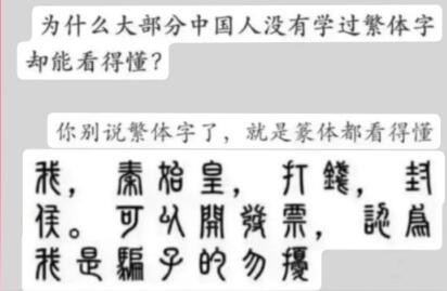 還有調皮的網友甚至“搬出”了秦始皇,表示“別說繁體字了,就是篆體都看得懂!”