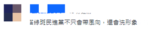 “塔綠斑民進黨不只會帶風向,還會洗形象”。