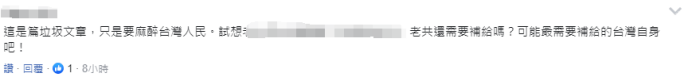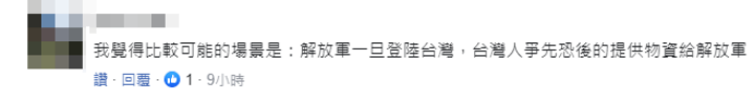 有網友直言如果解放軍登陸台灣,台灣民眾將“簞食壺漿以迎王師,(解放軍)就地補給”“台灣民眾將爭先恐後地提供物資給解放軍”。