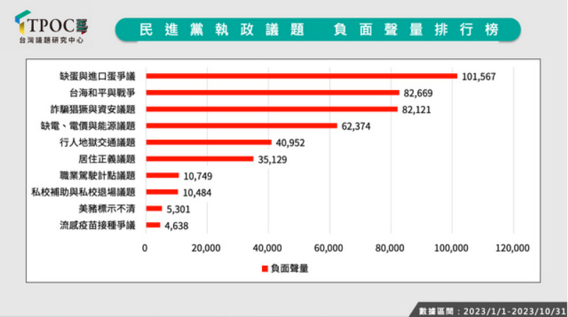 民進黨“執政”十大民怨排行榜。(圖源:TPOC台灣議題研究中心) 【編輯:石欢欢】