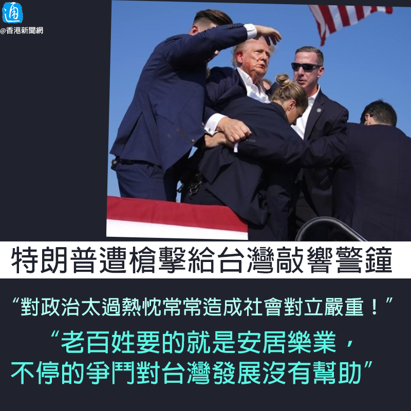 避免煽動對立!特朗普遭槍擊給台灣敲響警鐘分享到: