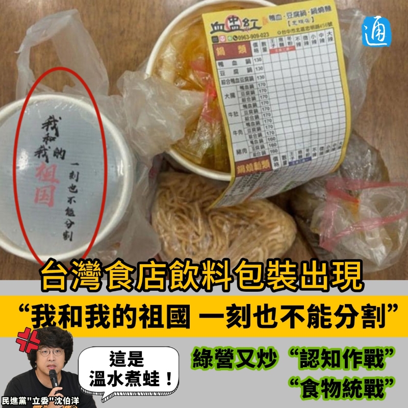 台灣食店包裝印 “和祖國不能分割”,“綠委”又炒“認知作戰”分享到: