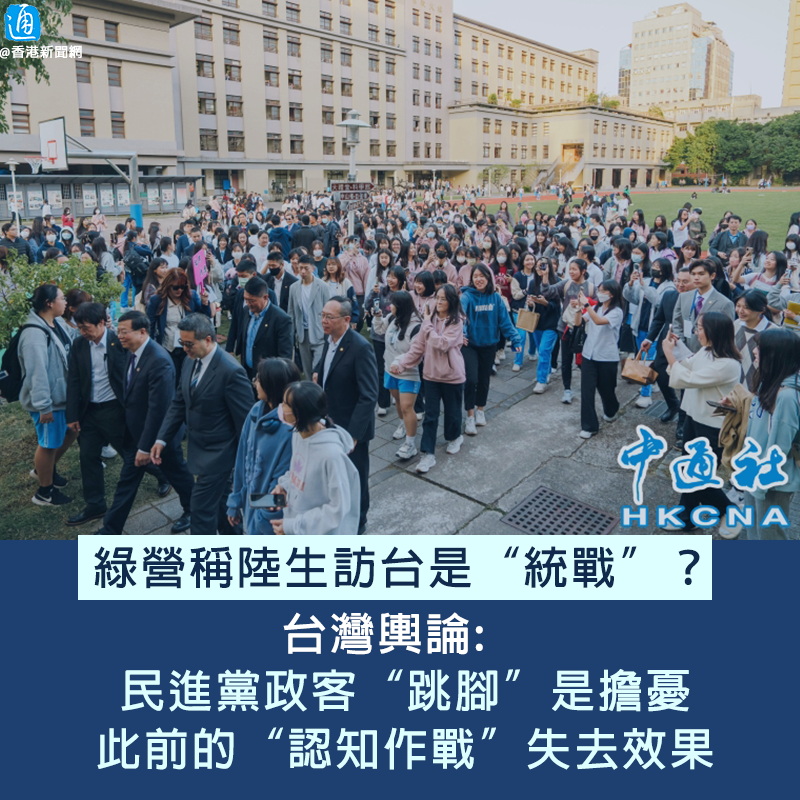 香港新聞網11月28日電 應馬英九基金會邀請,大陸高校師生訪問團27日抵台訪問。訪問團成員包括獲得6枚奧運金牌的乒乓球運動員馬龍和東京奧運會射擊冠軍楊倩。本是兩岸友好交流,卻被綠營抹黑為“統戰”。對此,台灣輿論認為,民進黨政客“跳腳”是擔憂此前的“認知作戰”失去效果。 大陸7所高校共40人組成的大陸高校師生訪問團27日抵達台灣桃園機場,受到台灣民眾熱烈歡迎。但有綠營側翼媒體早前引述台當局官員的說法指,師生團成員有中國共產黨黨員、共青團團員,“明顯是要來統戰”。 民進黨“立委”沈伯洋聲稱,對大陸而言,所有交流都是“統戰”的一部分;台北議員許淑華也稱,大陸是透過明星搞“統戰”,意圖“滲透”台灣。 對於綠營相關言論,台灣輿論認為暴露民進黨毫無自信,害怕一直以來的謊言被戳破! 前“立委”蔡正元昨日(27日)在政論節目《頭條開講》中直言,大陸師生訪台令民進黨擔憂此前的“認知作戰”失去效果。 他表示,民進黨一直以來宣揚的都是“大陸人這裡不好、那裡不好”,自詡台灣人比大陸人優秀很多。但如今看到馬英九基金會邀請的大陸學生氣質高雅、學問好、待人接物有禮數,不禁會讓台灣年輕人懷疑“怎麼和民進黨講的不一樣”?蔡正元認為,這無疑會影響台灣年輕人對民進黨的信賴。