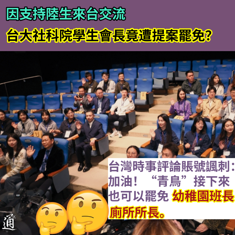 因支持陸生來台交流,台大社科院學生會長竟遭提案罷免?分享到: