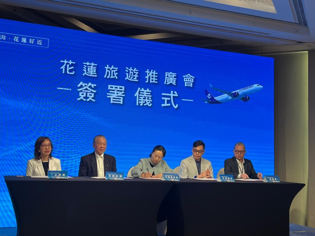 花蓮縣長徐榛蔚與香港旅遊業者簽署合作備忘錄。(香港中通社圖片) 中國國民黨立法機構黨團總召傅崐萁指出,2016年時任花蓮縣長期間,首次促成香港直飛花蓮。此次直航再度開啟,將深化雙方城市觀光領域合作與文化交流,為經濟與產業發展注入全新動能。