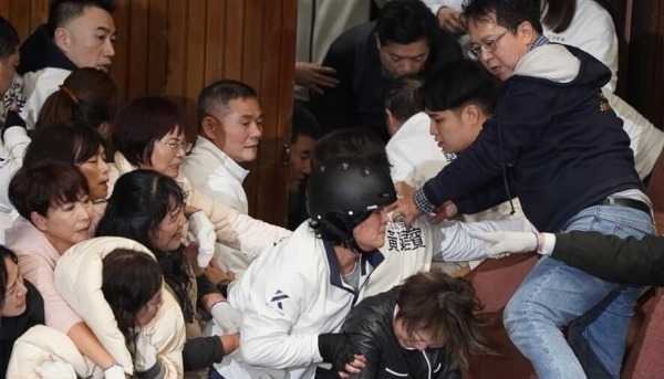 台灣立法機構“大亂鬥”,來參訪的沖繩高中生進不去。(圖片:台灣“中天新聞”) 據台媒報道,為阻止“選罷法”“憲訴法”“財劃法”三讀通過,民進黨“立委”19日晚夜襲議場,打破窗戶潛入並佔領主席台,還在議場各出入口設下重重阻礙,甚至用鎖鏈封門,門鎖孔還填滿膠水。 今天上午9時許,中國國民黨展開三路突圍,過程中,與民進黨“立委”發生衝突,鎖喉、壓制、潑水樣樣來,現場陷入一片混亂,藍綠陣營均有人因此掛彩。 值得注意的是,台灣立法機今天上午剛好有日本沖繩縣立高中生來參訪,原本規劃進入議場看開會實況,未料遇到藍綠“大亂鬥”,民進黨更將大門封鎖,他們無法進到議場,只好尷尬在門口留下“到此一遊”合照。 台媒第一時間報道了此事,有綠媒激動不已,高調自誇這是“台式民主”。台灣“Newtalk新聞”在標題中這樣描述:“見證藍綠立院議場亂象 日本沖繩高中生開心拍照留念”。台灣“今日新聞”在報道中稱,日本沖繩高中生拍照後離開,翻譯人員還跟他們說,“你們上台灣的電視了”。 畫面曝光後,台灣網友紛紛表示看不下去,怒批“丟臉”,“又是一則國際笑話”,“拿著民主口號在丟人現眼”,“進去可以看到一堆鬧劇,也就這樣而已了,一點參觀意義都沒有”、“上次是韓國(戒嚴事件),現在換日本”。 韓國總統尹錫悅12月3日晚突然宣佈戒嚴,民進黨團深夜發文疑似“力挺”,在台灣掀起輿論風暴。文章雖然被火速刪除,但事件仍持續延燒,甚至上了美國、韓國、日本、土耳其等多家外媒版面。 暴力混亂的場面,在台灣立法機構經常出現,已然成為國際笑話一則。 早前,斯洛伐克議員參觀台灣立法機構時,就當場擺出相互揮拳的對峙姿勢,模擬台灣藍綠陣營打架與對立的模樣,以及舉牌表達贊成或反對。諷刺的是,民進黨“立委”看到這一幕,立刻上前加入,示範如何勸架。 據台灣“中時新聞網”報道,本屆台灣立法機構自2月1日就職以來,已經為“修法”爆發多次衝突,甚至出現流血事件。(完) 【編輯:石歡歡】