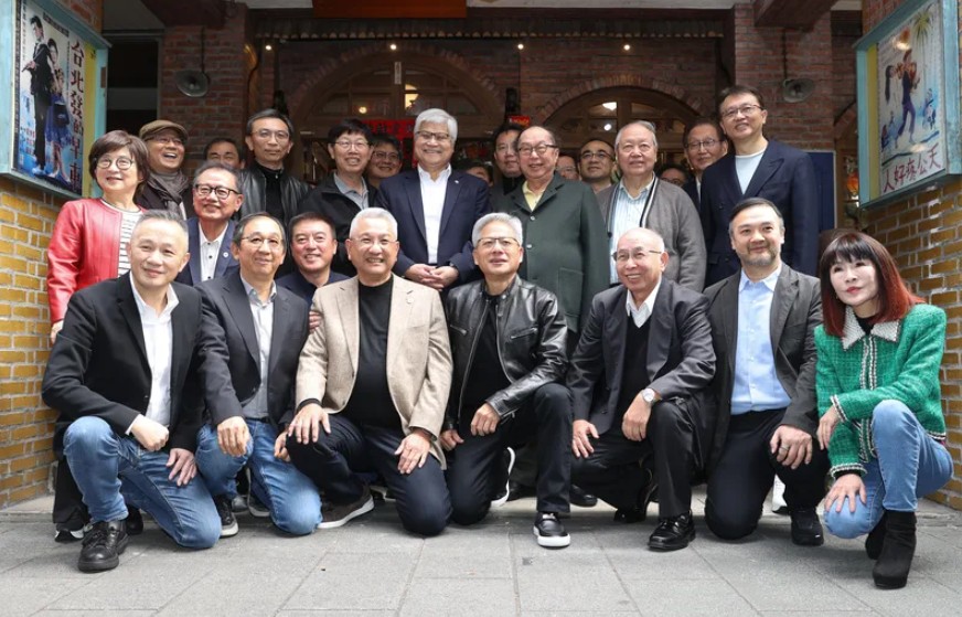 香港新聞網1月20日電 英偉達(NVIDIA)創辦人兼CEO黃仁勳於18日到訪台灣,與36家台灣供應鏈大廠的高層共進午餐。參加的公司包括台積電、鴻海、廣達、和碩、緯穎、華碩、矽品、宏碁、緯創和英業達等,這些公司的總市值超過新台幣百兆元。黃仁勳還與這些“飯友”在餐廳門口拍下“身價最高的合照”。今日(20日)這些“飯友”們的股價也普遍走揚,包括鴻海(2317)漲幅1.73%、緯創(3231)更漲逾半根。