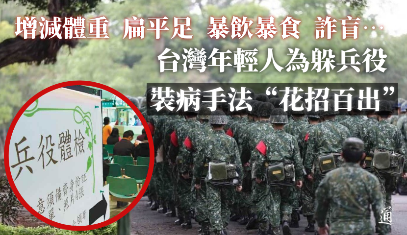 增減體重、扁平足、詐盲,台年輕人躲兵役裝病手法“花招百出”分享到: