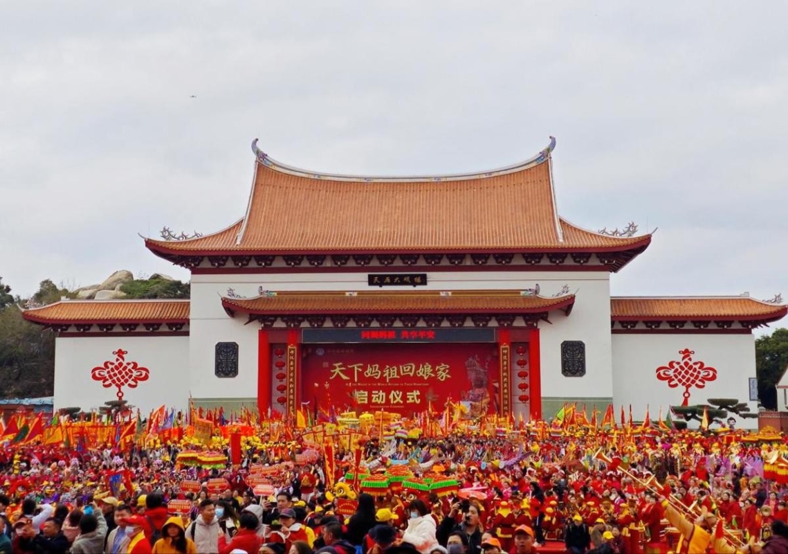 “天下媽祖回娘家”啟動儀式於3月29日在福建省莆田市湄洲媽祖祖廟天后廣場舉行。中國日報網圖片 “天下媽祖,祖在湄洲”。3月29日(農曆三月初一),福建莆田湄洲島舉行歷年來規模最大最為隆重的“天下媽祖回娘家”啟動儀式,來自海內外的一百多家媽祖文化團體代表,近萬名嘉賓匯聚一堂、共襄盛舉。 眾多台灣信眾一道跨越海峽,來到湄洲媽祖祖廟朝聖會香。台灣彰化埔心聖玄會媽宮主任委員游進民表示,希望兩岸能一同傳承和弘揚立德、行善、大愛的媽祖精神。 29日,還有兩尊媽祖神像從廈門“起飛”,赴台開啟一場為期六天的文化交流之旅。1997年,湄洲媽祖金身首次乘坐飛機赴台,本次“空中旅行”不僅延續了20多年來護航媽祖信俗的傳統,更讓該航班變身“移動的文化展館”,為兩岸文化交流再搭橋。 媽祖信仰是兩岸共同的文化紐帶,在促進兩岸交流合作中發揮著重要作用。當年,大陸先民渡海抵台,媽祖信仰也隨之入台。如今,台灣各地的媽祖廟超過500座,信眾逾千萬。今年,台灣多處媽祖宮廟也各自組織了慶典祭祀活動,每年吸引上百萬人次朝聖的台中市大甲鎮瀾宮媽祖繞境也將於4月4日起駕。(完) 【編輯:馬華】