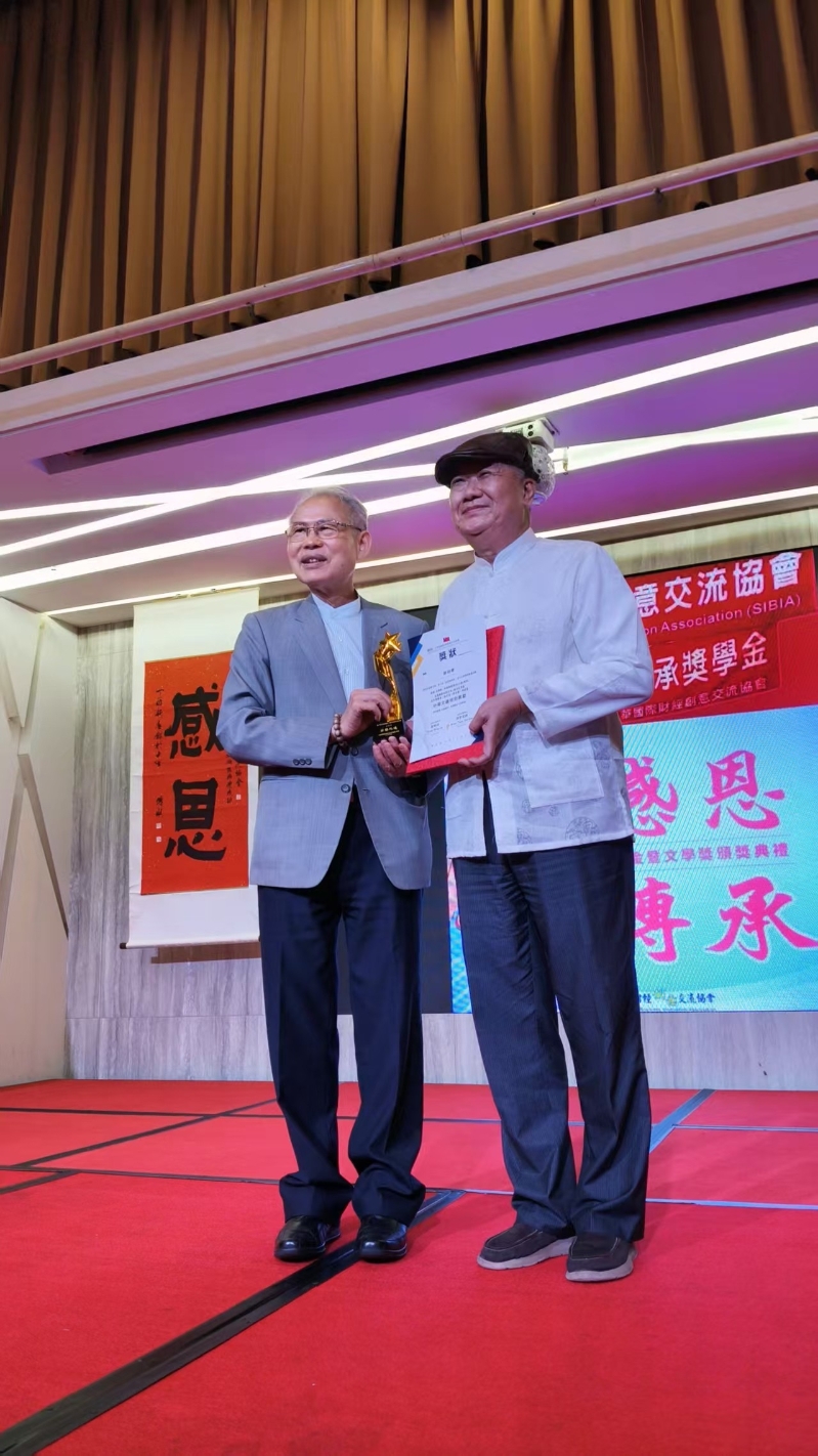 得獎者和頒獎嘉賓合影 (謝明輝提供) 初心不改,十年有成 “人類因承恩而感恩,因感恩而傳承,人生也因感恩與傳承而更為亮麗。”這是協會創辦人謝明瑞教授堅持不懈的初衷。早在1988年,他於淡江大學財金所任教時,與學生間建立密切互動與交流,逐漸形成一個特殊的“謝家班”師生網絡,彼此在學業與事業上互相扶持,進而擴展至其他大學與專業領域。 為了讓這份情誼與教育信念具體落實,謝明瑞教授遂有創建協會、推動國際交流的構想。2005年萌生以雙親之名設置獎學金的念頭,2008年提出獎學金設置辦法,2014年正式創立“中華國際財經創意交流協會”。 感恩的行動,傳承的力量 協會自2014年開始推動各類獎學金申請活動,並逐年擴增獎項與補助內容。為了鼓勵學生勤奮向學,並對養育之恩與師長教導心懷感念,設立“感恩與傳承”獎學金,自2021年起正式更名。 這項獎學金涵蓋兩岸三地及國際學生,除支持學術研究,也獎勵藝術、文學、家庭教育等多元領域之貢獻者。協會更是台灣第一個同時頒發在台陸生與在陸台生獎學金的民間組織,展現深遠的兩岸與國際交流視野。歷年得獎者遍及亞洲、美洲、歐洲與非洲等多國,彰顯其國際化、公益性與文化價值。 文化薪火,以詩為證 除了學術與社會貢獻的肯定,協會也大力推廣文化藝術,創設文學獎與藝術獎,讓更多青年才俊得以展現風采。本屆“中華文薈傑出貢獻獎”,由中華詩詞藝術學會理事長謝明輝獲得。他表示:感恩謝明瑞教授在詩集出版與創作推動上的提攜與栽培。他雖為財經專業出身,卻以教育為根、文化為翼,致力於跨界推動文化運動。從最初的獎學金制度,到涵蓋文學、藝術、模範母親表揚與文化奉獻者嘉勉,謝明瑞教授用實際行動讓“感恩”不只是口號,而是具體可行的社會責任實踐。