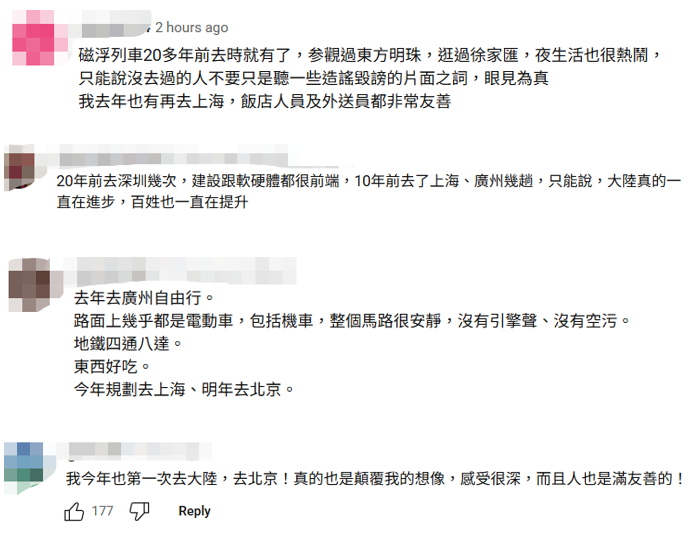 網友評論 也有不少台灣網友在直播評論區分享自己赴大陸旅遊的經歷,直言大陸基建完善、交通方便、民眾友善,完全“顛覆想象”,呼籲沒有去過大陸的台灣民眾切勿相信造謠的片面之詞,眼見為真。