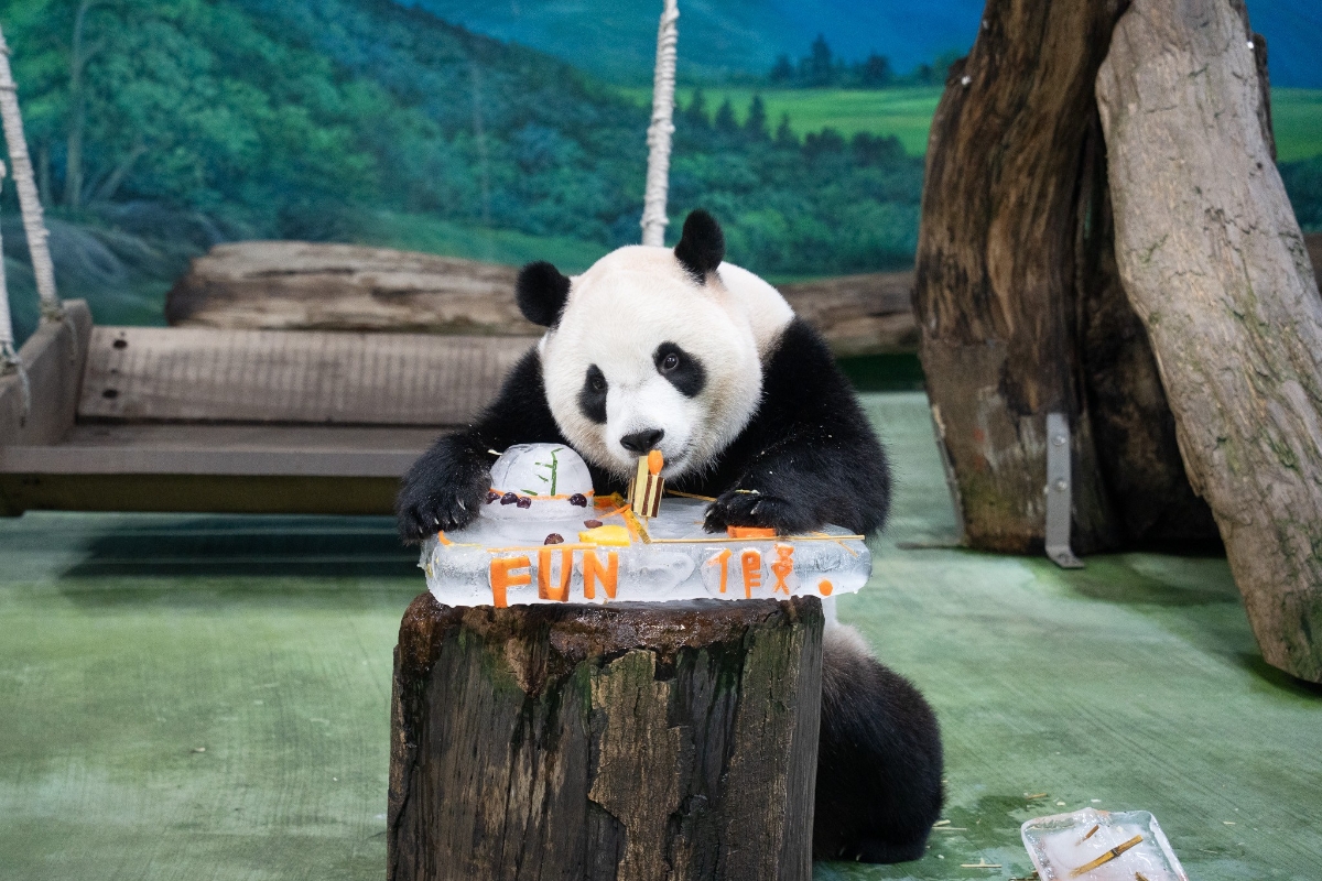 ● 大批台灣民眾為大熊貓“圓寶”5歲慶生 台北市動物園28日結束年度休園重新開放,恰逢大熊貓“圓寶”5歲生日,吸引大量遊客前來,共同為其慶生。