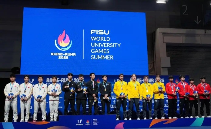 德國萊茵-魯爾世界大學生夏季運動會乒乓球男子團體決賽 來源:新華社 本屆大運會男子乒乓球團體決賽上演“海峽對決”,中華台北隊對戰中國隊。中華台北隊選手為高承睿、馮翊新、黃彥誠及張秉丞,中國隊選手則是敖華磊、陳俊崧、孫正、曾蓓勛,雙方戰至第5局才分出勝負。中華台北隊以3:2的比分贏下比賽。這也是中華台北隊本屆大運會的第2金。 據了解,中華台北隊從2011年大運會起連續7屆闖進乒乓球男團4強,2019年意大利那不勒斯大運會、2021年成都大運會連續兩屆於決賽不敵中國隊獲得銀牌。(完) 【編輯:程敏璇】