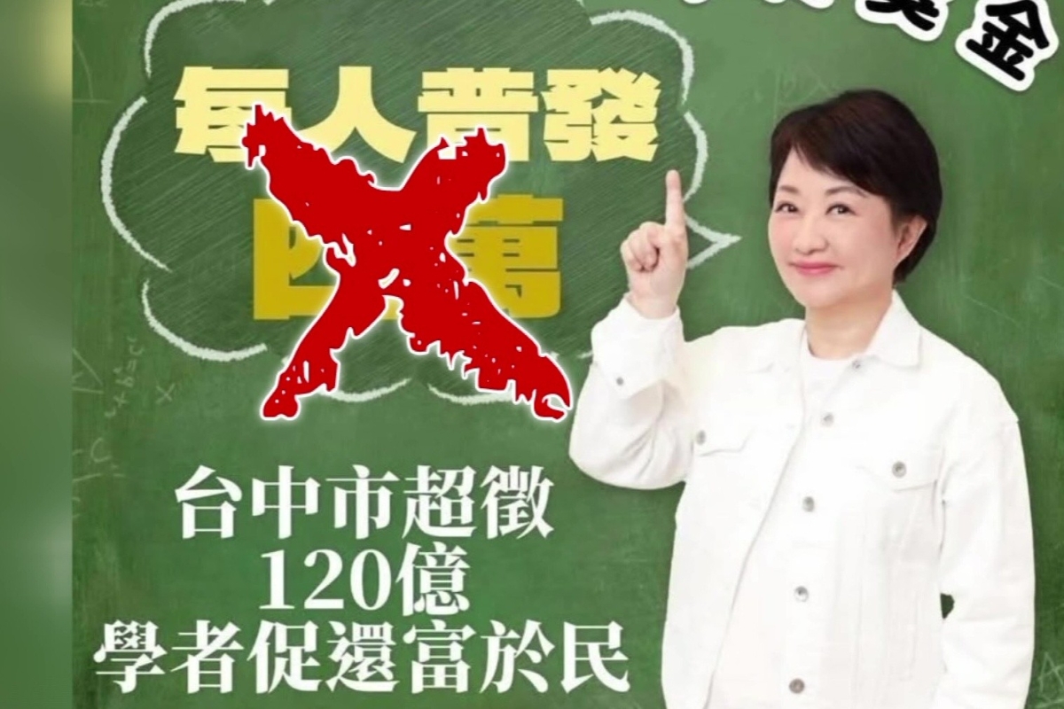 台灣網絡上謠傳台中市將普發4萬元,後台中市長盧秀燕予以澄清(圖源:臉書截圖) 藍營最初提出普發方案,主要依據2024年當局財政收入超征逾5200億元,主張“還錢於民”。如今綠營效仿此邏輯,以地方縣市稅收超征為由,要求地方政府跟進“加碼”普發,并喊出“不發就是騙子”的口號,形成“以子之矛攻子之盾”的政治攻防。 民進黨台北市議員許淑華29日稱,台北市超征稅款若按250萬人口普發,平均每人可分得2萬元,因此她建議,既然普發已形成全民共識,也應要求縣市首長比照辦理。桃園市議員于北辰則指責道,國民黨通過普發現金提案保住了立法機構的席位,但其主政的縣市面對財政超征卻不願“還錢於民”。 儘管綠營訴求明顯帶有政治算計,但其行動并非全無依據。今年2月,花蓮縣議會通過一項由民進黨議員胡仁順提出的提案,建議將當局統籌分配稅款161億元及地方超征1億元用於普發,每人可獲逾5萬元。 不過,這一說法遭到台灣《聯合報》駁斥,報道指出161 億元的統籌分配稅款能否順利到賬仍未可知,且修法後當局與地方的業務移轉、經費分攤等事宜尚未敲定,怎能全部用於普發現金?并反指民進黨議員不做功課,批評民代“太好當了”。 花蓮縣政府亦回應,該案當局尚未公佈施行,且未明確分配數額,目前沒有具體財源可供相關收支評估及規劃。儘管如此,該提案仍進一步推升了地方普發的輿論熱度。