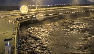 台灣花蓮縣馬太鞍溪堰塞湖溢流造成下游嚴重受災。(圖源:聯合網資料圖) 台林保署表示,21日空中勘察發現,花蓮縣馬太鞍溪堰塞湖溢流口下方800米處河道,因土體崩塌堵塞形成小型堰塞湖,且水位快速蓄滿。 據台媒報道,新堰塞湖當日晚間近9時開始溢流,下游水勢變得又快又急,且水位上升淹至涵管便道路面,甚至沖毀局部結構。 台交通部門隨後說明,新形成的馬太鞍溪堰塞湖在晚間9時9分測到第一波溢流訊號,洪峰在9時49分經過馬太鞍溪涵管便道,水位抬升高度約70釐米。 交通部門強調,洪水整體走向都在原本疏浚好的水道內,2米的大涵管也完好無損,兩側堤防亦均保持穩定。現場只剩下一些積土、樹枝雜物,以及部分護欄被沖歪,公路局會在警戒解除後,立即進場清理與檢修。 據了解,台灣花蓮縣馬太鞍溪堰塞湖溢流造成的嚴重洪災將滿月,目前已致19人死亡,百餘人受傷、仍有5人失聯。(完) 【編輯:黃璇】