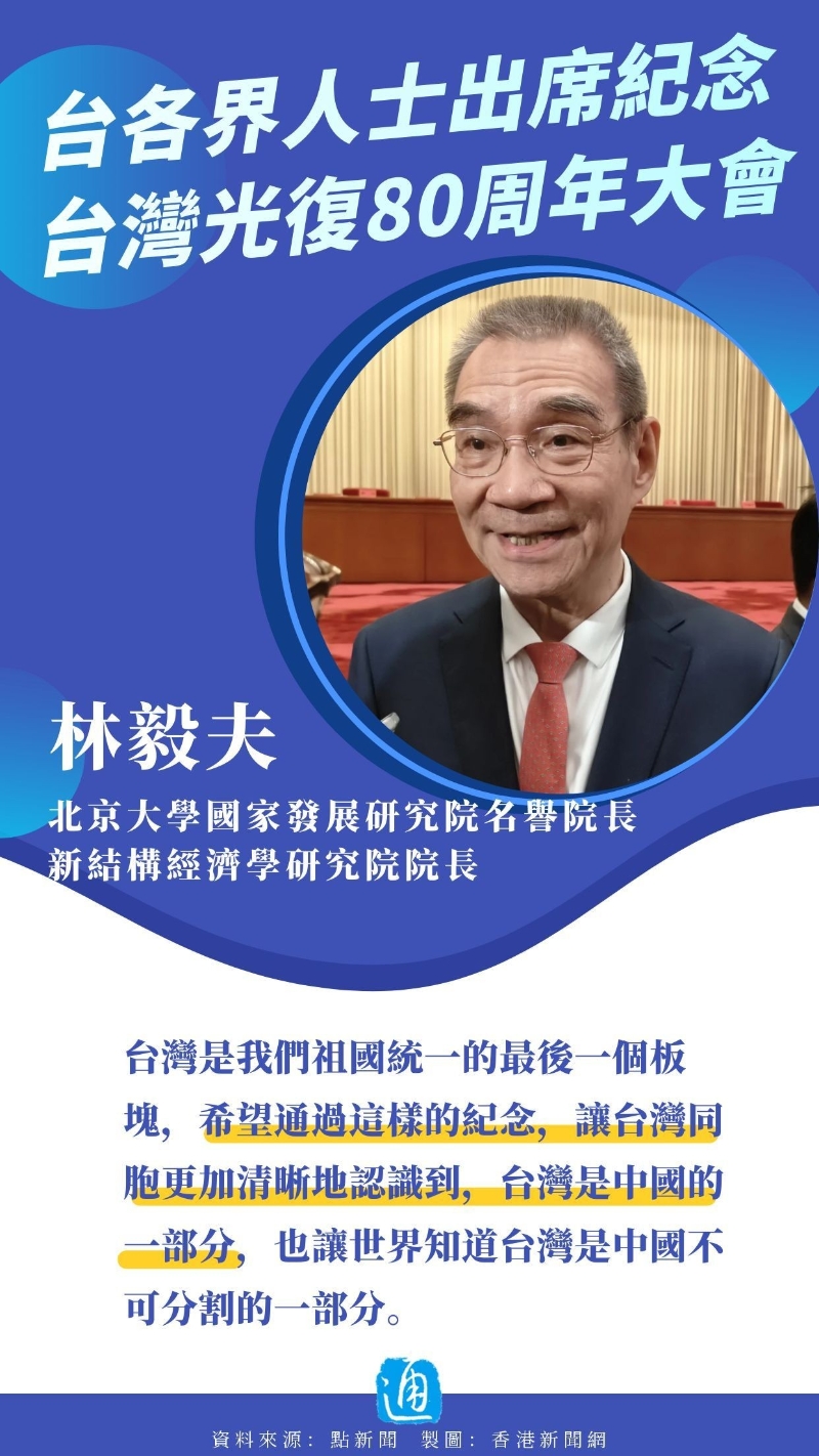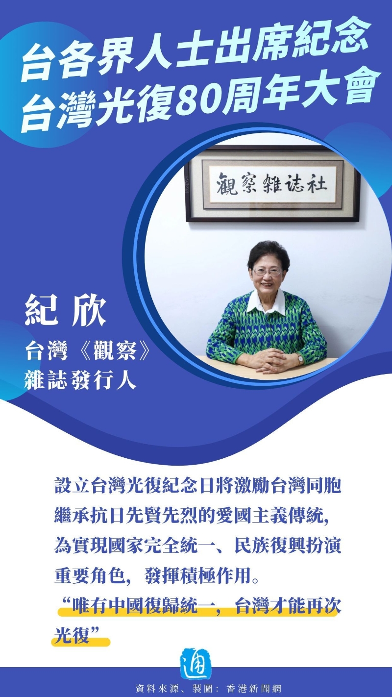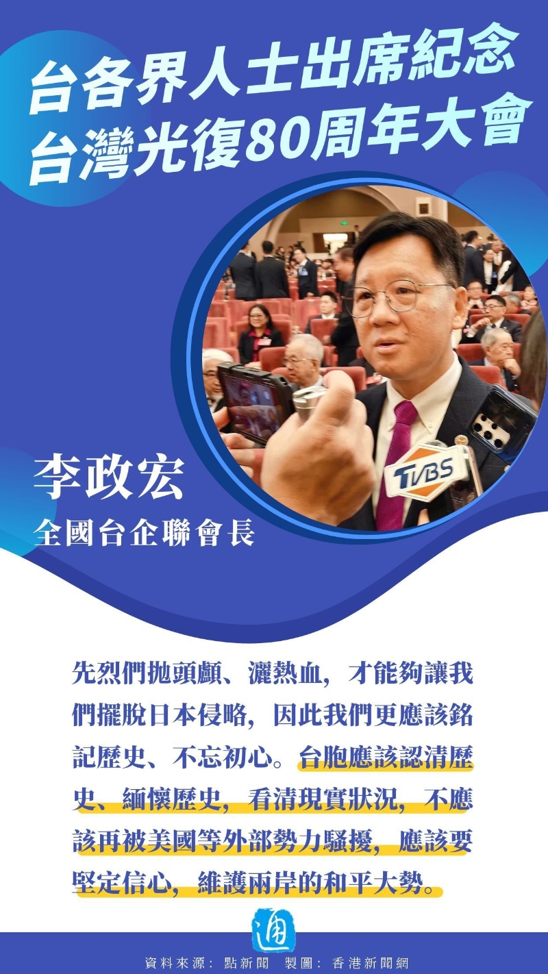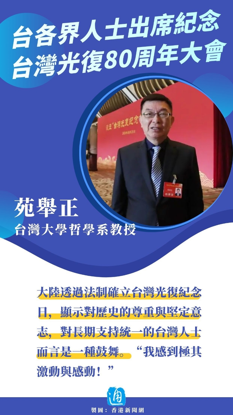 台各界人士出席紀念台灣光復80周年大會:意義重大
