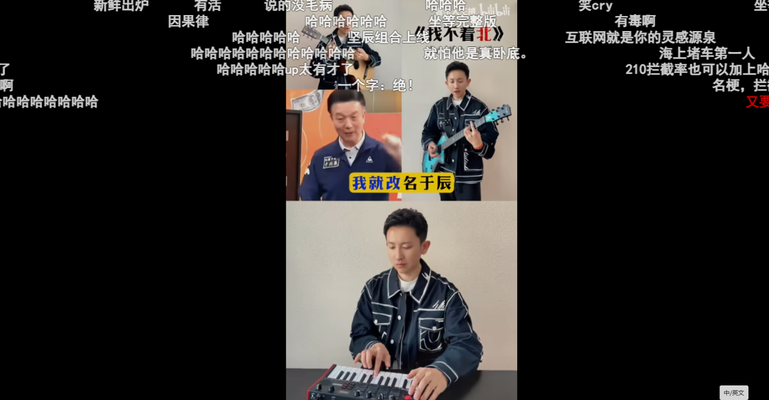 王搏在社交平台上傳于北辰語錄混剪,並改編成歌曲《找不著北》。(圖源:B站@音樂人王搏) 影片中,于北辰表示:“一旦打進來,我就把信號燈全部設成紅燈,你就一直等等等。”他還說:“一旦靠近我,我就掏耳朵,掏耳朵的人,誰都不能碰!”更稱:“一旦打進來,我就躲進衛生間,你敲門,我就說有人!”于北辰最後直言:“一旦要抓我,我就改名‘于辰’,讓你們‘找不著北’!”而這首惡搞新歌的作曲王搏,正是《沒出息》的創作者。