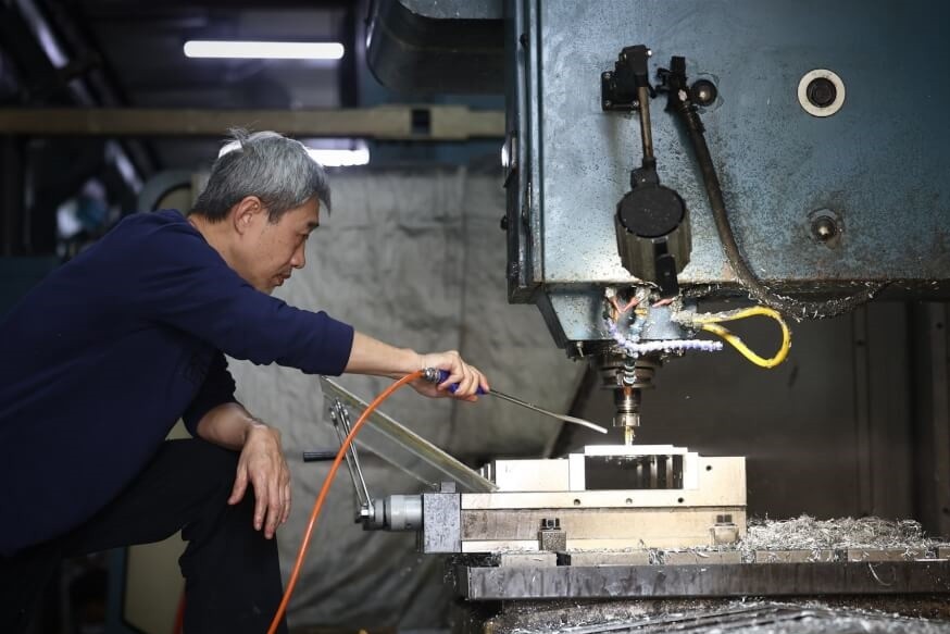 圖為台灣新北市新莊區一間工廠員工仔細操作加工機具(台灣“中央社”資料圖)