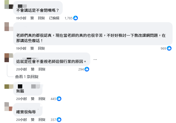 台灣網友評論截圖 中國國民黨“立委”羅廷瑋批評,賴清德發言不只用詞失當,還赤裸裸暴露出台當局對教育制度責任的逃避,以及對第一線教師專業的嚴重輕忽。羅廷瑋指出,賴清德拋出“找好老師不如找好書”的說法,等同於將教育體系的結構性失衡,轉化為個人努力與資源選擇的問題,進而淡化台當局在教育政策上應負的責任。 台灣高中語文老師區桂芝質疑,“師道不存在台灣已經很久了”,縱使賴清德是一時失言,那大家可不可以說“好的台當局領導人是可遇不可求”?她指出,好老師要可求,台當局就要做出好的教育政策、設計各種制度來保障老師,而不是像現在這樣,多少老師被莫名其妙匿名投訴,“讓老師陷入隨時遭受威脅的困境。” 區桂芝進一步指出,現在台灣的語文老師或歷史老師最倒楣,因為語文就是中國文學,教得就是中國文化,“結果我們不能告訴學生我們就是中國人,你只要這樣說你就被霸淩。”區桂芝直言,“這很荒謬”,現在台灣老師不能夠教孩子真正的歷史,“我們明明教得是中國文學、中國文化,卻不能談中國,這就是我們現在的錯亂。” 2025年,台當局教育部門在賴清德的指示下完成13篇“識讀中國”補充教材,企圖借新編教材渲染所謂“大陸威脅”,引發諸多爭議。有台灣教育界人士直言,此舉強迫學校在已塞滿的課程中增加更多為政治服務的內容,但台當局的當務之急是解決教師流失、行政減量等問題。 全台教師荒問題日益嚴重,“不願入行”和“離職潮”問題不斷加劇,“無證教師”則成為台灣教育體系的“重要支撐”。 2025年4月,有台媒指出,全台公費教師的解約率已接近15%。而根據台當局教育部門資料,師資培育生在取得教師證後,3年內報考正式教師考試的比例逐年下降,2023年已降至31.25%,也就是說,有近七成的儲備師資都不願意投入教職。另外,從2021學年度到2023學年度,短短3年間,全台小學無證代理教師佔所有代理教師的比例已從37.6%暴增至56.4%。 (完) 【編輯:張依珊】