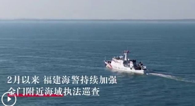 新華社資料圖 發言人指出,2月以來,福建海警組織艦艇編隊持續加強金門附近海域執法巡查,進一步強化有關海域管控力度,切實維護包括台灣在內的中國漁民合法正當權益和生命財產安全,有力保障廈金海域正常航行和作業秩序。 據中國海警發布的執法巡查視頻顯示,福建海警14603船對台海巡部門金門10083船喊話,“新春佳節,兩岸齊歡,我們同為一家人,共度一個節,盼早日回歸,共話團圓。”對此,台海巡署部門金門10083船通過無線電回覆稱,“收到,謝謝”。(完) 【編輯:馬華】