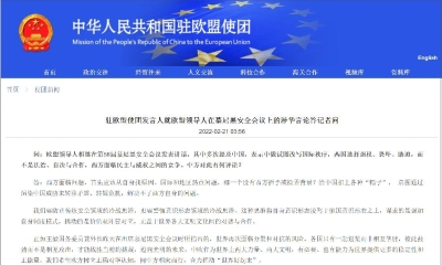 中國駐歐盟使團網站2月8日發佈《駐歐盟使團發言人就北約秘書長涉中俄聯合聲明言論答記者問》。
