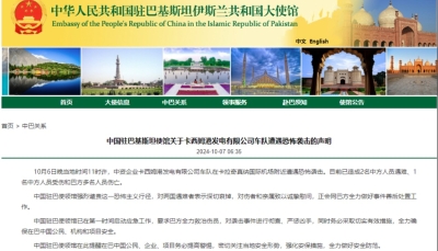 香港中通社4月26日電 中國駐巴基斯坦使館發佈關於卡拉奇大學孔子學院班車遭遇恐怖襲擊的聲明。