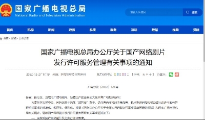 國家廣播電視總局。圖源:中新網 《規定》的主要內容有:明確將網絡劇片等網絡視聽節目納入管理範疇,明確將經紀機構、網絡視聽節目服務機構等從事節目制作經營活動的主體以及在他人組織下參與節目制作的主體納入管理範疇。 完善節目禁載內容,增加有關片酬管理規定,禁止開展收視率點擊率等方面的虛假宣傳等。 在行政許可設定方面,根據國家“放管服”改革精神進行了優化,包括委托實施相關行政許可、取消逐級審核環節、合並電視劇片制作許可、進一步明確許可條件、簡化申報材料等。 完善對節目制作經營違法行為的處理。在監督管理方面,明確了廣播電視行政部門管理職責和有關機構、個人的配合義務,違法行為投訴、舉報制度。在法律責任方面,明確了對具體違法行為的處罰措施。 【編輯:馬華】