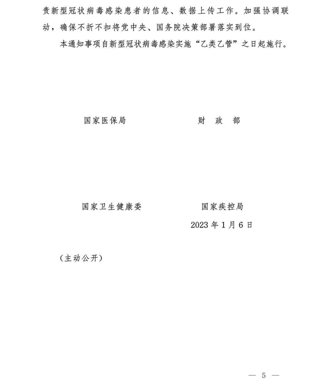 國家醫保局、財政部、國家衛生健康委、國家疾控局今天(1月7日)發出《關於實施 “乙類乙管”後優化新型冠狀病毒感染患者治療費用醫療保障相關政策的通知 》。