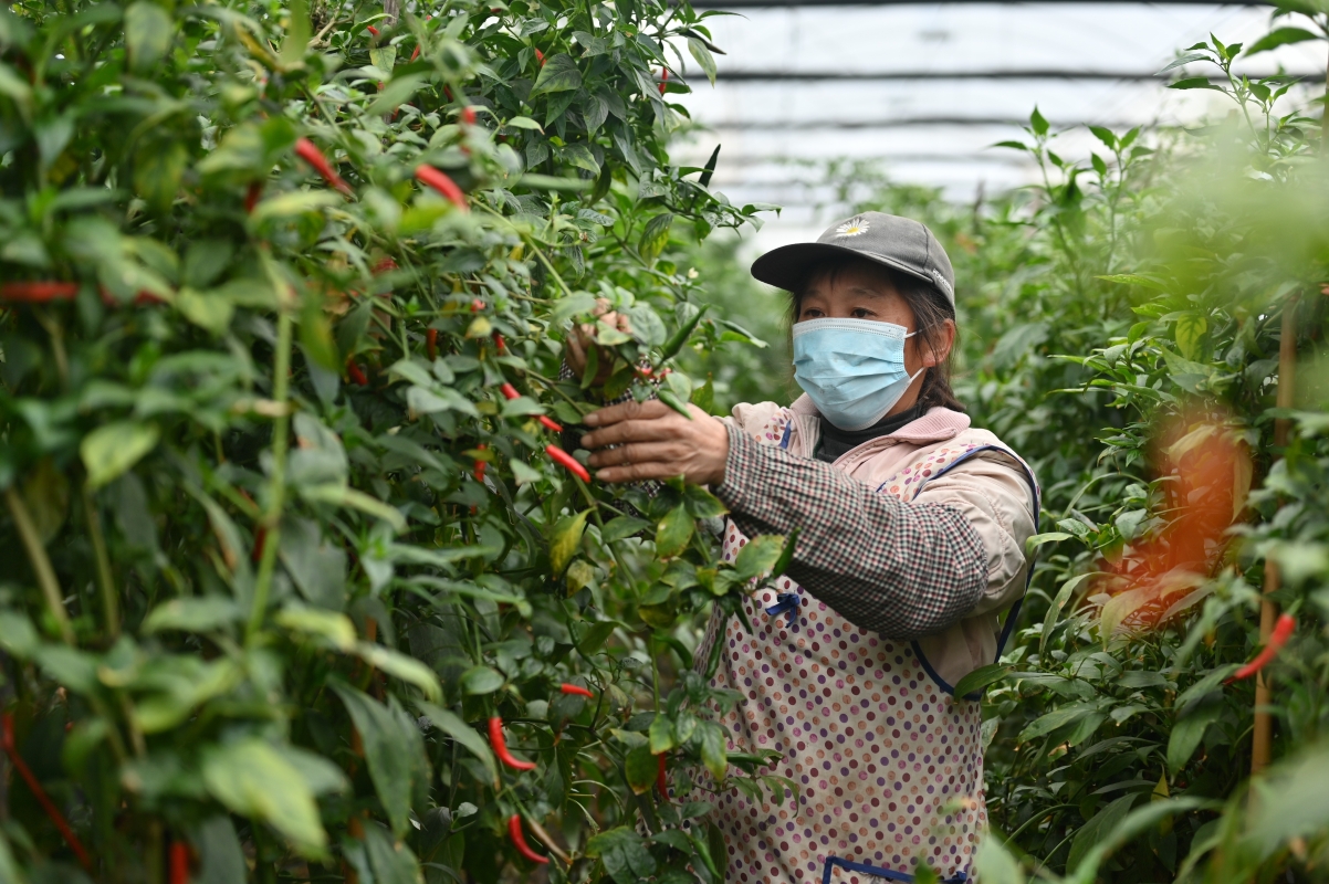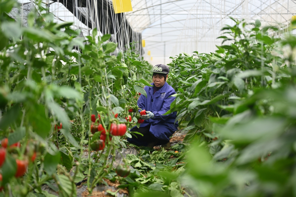 航拍賀州市平桂區羊頭鎮現代設施農業產業園的連片高標準溫室大棚。俞靖 攝 據賀州市農業農村局副局長徐龍鐵介紹,目前,賀州共有12個供港澳蔬菜備案基地和20個粵港澳大灣區“菜籃子”生產基地(含加工),是廣西獲得認證基地最多的設區市。該市建立智慧農業溯源系統,全市61個鄉鎮均設立了蔬菜禽肉農藥殘留流動監測站,構建“從生產到銷售、從農田到餐桌”的智能化信息服務平台,確保全程可控、可溯源。 在賀州市平桂區羊頭鎮現代設施農業產業園,連片高標準溫室大棚排列整齊。棚內,紅、黃彩椒長勢喜人,村民正在抓緊採收。“我們平均每天可向粵港澳大灣區和賀州本地市場銷售3萬斤以上的蔬菜。”於2017年返鄉創業的“新農人”包國倫現任賀州美源農業發展有限公司副總經理,他稱企業計劃今年繼續擴建種植棚和育苗基地,進一步提高產能。