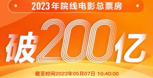 香港中通社5月7日電 據中國內地燈塔專業版數據,截至北京時間5月7日10時40分,2023年度大盤票房(含預售)突破200億元人民幣(約合28.95億美元),電影《滿江紅》以45.4億元人民幣(下同)的成績暫時位列票房榜首位。