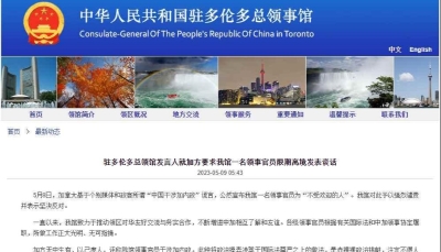 加拿大公然宣佈中方一名領事官員限期離境 中使館:絕不接受!分享到: