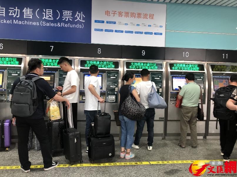廣深城際今起加開“大站直達”列車,圖為旅客在廣州東站購票。(香港文匯網記者 方俊明 攝) “廣州東站-深圳站”城際省時了約20分鐘 據香港文匯網報道,經常往返廣深開展商務活動的旅客高先生告訴記者,由於廣深城際連通位於廣州、深圳雙城市中心的廣州東站、深圳站,而且深圳站毗鄰羅湖口岸而連通香港,因此成為他往返廣深兩地的優先選擇之一。他說,“廣州東站-深圳站”城際列車平時耗時85分鐘左右,如今縮減至68分鐘,這意味着可快速了20分鐘左右,這對於商務客出行是一大利好消息。他也期待鐵路部門今後可根據需求開通更多“大站直達”列車,進一步促進粵港澳大灣區互聯互通。