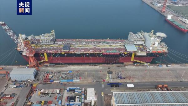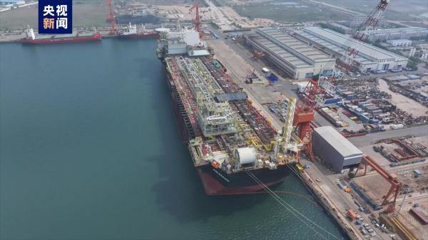 據央視新聞客戶端報道,浮式生產儲卸油船是開採深海油氣資源的高端大型海洋工程裝備,可實現海上石油、天然氣等能源的開採、加工、儲存、外運,被稱為“海上石油加工廠”。今天交付的M350型浮式生產儲卸油船,總長364米、型寬64米、型深33米、排水量46萬餘噸,是目前世界上最大尺度的浮式生產儲卸油船。