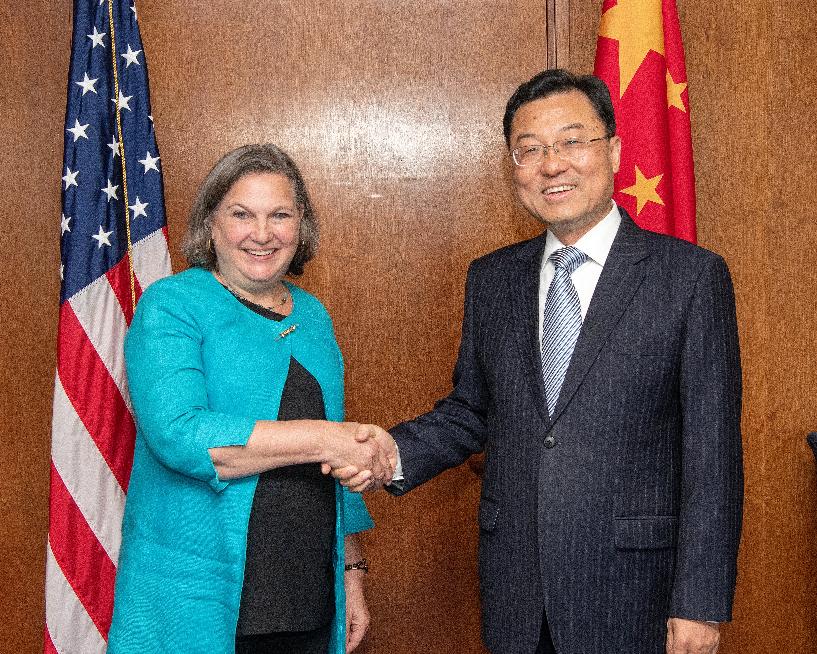中國駐美大使謝鋒與美國副國務卿紐蘭合影。圖源:推特 謝鋒發推曬出與美國國務院禮賓司司長吉福德及負責政治事務的副國務卿紐蘭的合影稱,“向吉福德代表遞交了我的國書副本,很高興與副國務卿紐蘭會面。我期待在未來的日子里與美國同事一起共事。” 謝鋒隨後又回復美國駐華大使伯恩斯此前推特與其互動。伯恩斯5月24日發推並曬出合影稱,“我與新任中國駐美大使謝鋒的告別晚宴——這是我們14個月來的第23次會面——我們正在處理充滿挑戰的美中關係。我期待著在他履新之後與他共事。”謝鋒25日晚發推回復稱,“感謝餞行。我很珍視我們進行了多輪坦誠、實質性的溝通。讓我們為這一最重要的雙邊關係作出我們應有的貢獻。” 另據中國駐美大使館網站消息,當地時間5月25日,謝鋒大使會見美國副國務卿紐蘭。紐蘭歡迎謝鋒大使到任,表示美國務院將為謝大使履職提供便利和支持。 謝鋒表示,中美關係攸關兩國人民福祉和世界前途命運,希望美方與中方相向而行,以實際行動落實習近平主席和拜登總統達成的重要共識,探索新時期中美正確相處之道,相互尊重、和平共處、合作共贏,加強對話、管控分歧、推進合作,爭取中美關係回歸正軌。 雙方並就共同關心的問題交換意見,同意保持密切溝通。(完) 【編輯:馬華】