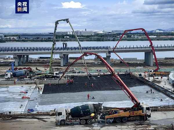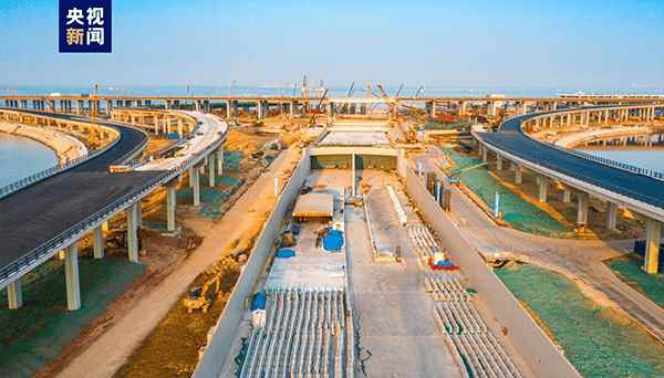 東人工島全島陸域面積34.38萬平方米,相當於48個國際標準足球場,島上設隧道工程、救援碼頭、供配電配套用房及相關附屬配套設施,其中,隧道工程包括長480米的堰築段隧道、長855米的島上主線隧道,以及實現交通轉換的4條匝道隧道。 作為國內首個高速公路水下互通立交,東人工島採用了“一體兩翼”的佈局,與海底沉管隧道相連接,並實現項目與廣深沿江高速等路網的高效順暢銜接。未來經深中通道東人工島,可東往惠州、深圳龍崗區,西往中山、珠海,北往廣州、東莞,南往深圳前海合作區、香港方向,充分發揮項目作為粵港澳大灣區核心交通樞紐的重要作用,推動大灣區主要城市間一小時生活圈的形成。 海水裏“鋪被”,創新築島填砂工藝 東人工島施工面臨著工程規模體量大、交叉作業多、基坑支護結構型式多、環保要求高等突出難點,且在建設過程中不能影響寶安機場、廣深沿江高速等既有項目的運營。 東人工島及堰築段隧道處於既有廣深沿江高速下方,在其40跨橋墩承台海域範圍內填海築島,需填築超過300萬立方米的海砂。“我們築島施工對沿江高速橋墩產生的位移和沉降不得超過5毫米,可以說控制指標要求極為嚴格。”深中通道管理中心島隧工程部部長張長亮介紹,在既有橋梁橋墩兩側進行對稱分層填築,必須要做到受力均勻,否則很容易造成偏載,從而導致橋墩位移。