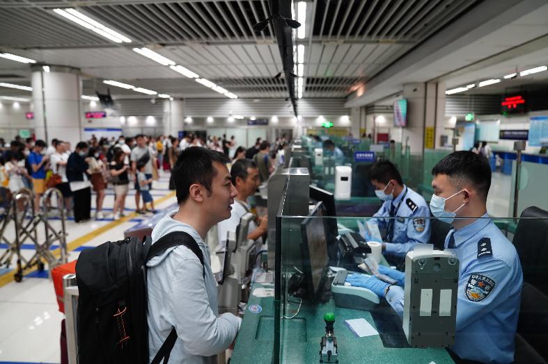 深圳灣邊檢站及時加開查驗通道應對客流高峰。香港文匯網記者 鄭增浩 攝 據香港文匯網報道,6月24日是端午假期的最後一天,深圳灣口岸上午九時左右便迎來了第一波以內地居民為主的返程客流,出境方向客流相較假期前兩天則有明顯回落。 “孩子今年剛高考完,趁着端午假期一家人去了香港、澳門,帶着孩子去看看外面的世界。”剛和妻子女兒過完關的張先生笑着說。 另外一名持護照入境的黃先生則是利用端午假期前往新加坡看望做生意的父母,“爸媽在新加坡做生意比較忙,端午也沒有空回來,趁着端午假期帶上家鄉的粽子去看望他們,讓他們也嘗上了家裏的味道。” 為確保口岸通關高效順暢,深圳灣邊檢站科學部署,採用警力疊加模式,確保執勤警力充足;開足查驗通道,在客流高峰時段及時加開人工流動查驗台;在入境方向為港澳居民增設快捷通道信息採集點;積極協調駐地義工服務團隊,在節假日期間增派口岸義工為旅客提供諮詢、幫扶等暖心服務。 【編輯:丘志彬】