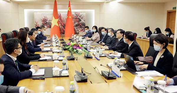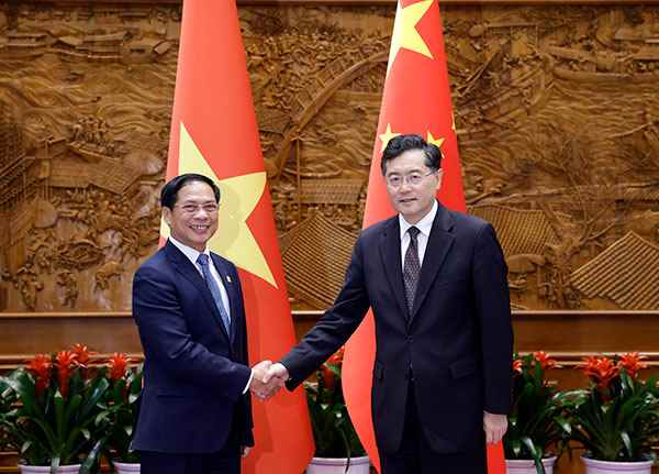 秦剛表示,去年10月,習近平總書記邀請阮富仲總書記訪華,引領中越全面戰略合作夥伴關係進入新時代。中方視越南為周邊外交優先方向,重視範明政總理來華訪問,相信此訪將為落實高層共識、深化中越全面戰略合作註入新的動力。中越兩國山水相連、人文相通,理念相同、道路相近。雙方要加強戰略溝通,加快發展戰略對接,把合作的蛋糕做大,把合作的根基築牢,推動兩國關係取得更大發展。 裴青山表示,越方將對華關係視為頭等優先,旗幟鮮明奉行一個中國政策,堅定支持中國特色社會主義事業發展壯大。今年是越中建立全面戰略合作夥伴關係15周年。此訪是範明政總理首次訪華,也是越南總理時隔7年再次訪華,期待通過此訪落實好兩黨總書記達成的共識,密切戰略溝通,深化務實合作,使兩國關係取得更多成果。