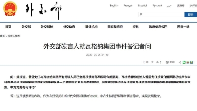 香港中通社6月26日電 對於瓦格納集團事件,中國外交部發言人毛寧6月26日在例行記者會上表示,瓦格納集團事件是俄羅斯的內政。